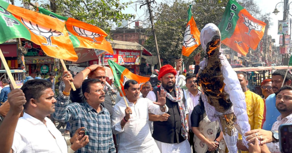 सिवान : राहुल गांधी का भाजयुमो ने किया पुतला दहन