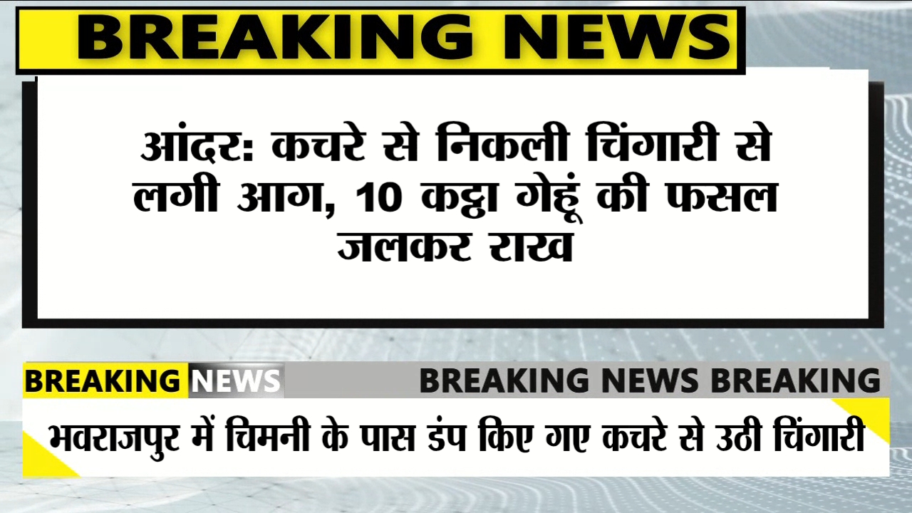 आंदर (सीवान): प्रखंड के भवराजपुर स्थित चिमनी के पास शुक्रवार शाम कचरे से उठी चिंगारी से भीषण आग लग गई, जिससे करीब 10 कट्ठा गेहूं की फसल जलकर राख हो गई।