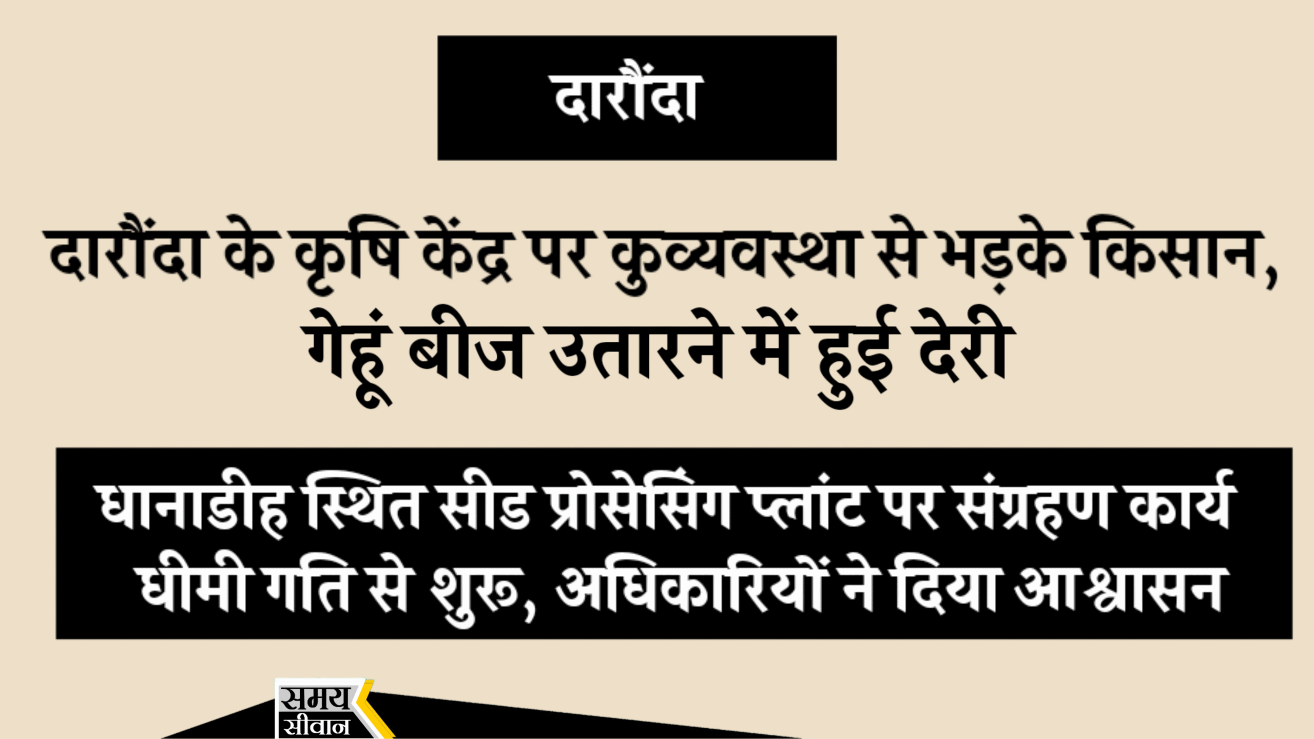 दारौंदा (सिवान): प्रखंड के धानाडीह स्थित कृषि फार्म परिसर में रबी सीजन के लिए बिहार राज्य बीज निगम द्वारा स्थापित सीड प्रोसेसिंग प्लांट पर शनिवार को गेहूं बीज संग्रहण कार्य कुव्यवस्था के बीच शुरू हुआ, जिससे किसानों में नाराजगी देखी गई।