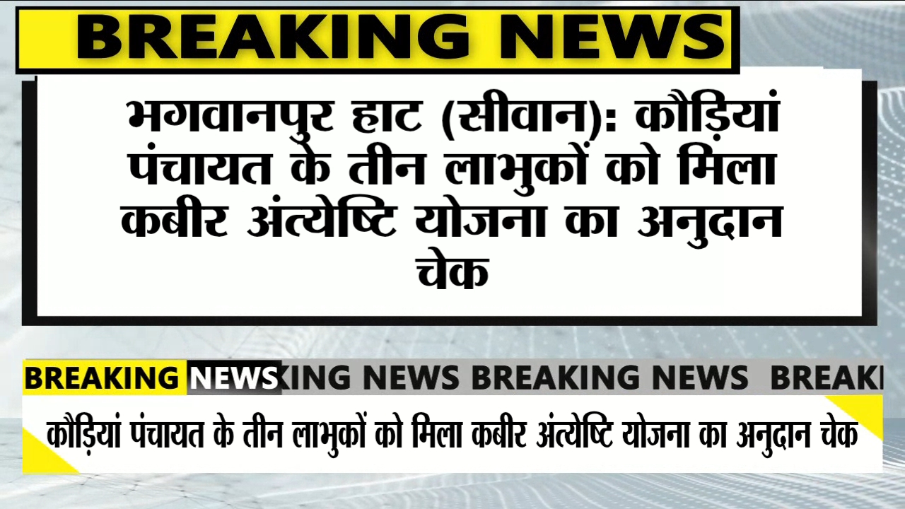 भगवानपुर हाट के कौड़ियां पंचायत में शुक्रवार को तीन दिवंगत व्यक्तियों के परिजनों को कबीर अंत्येष्टि योजना के तहत ₹3000 की अनुदान राशि का चेक प्रदान किया गया। यह चेक मुखिया राजकुमारी देवी एवं पंचायत सचिव मो. इरफान की उपस्थिति में वितरित किया गया।