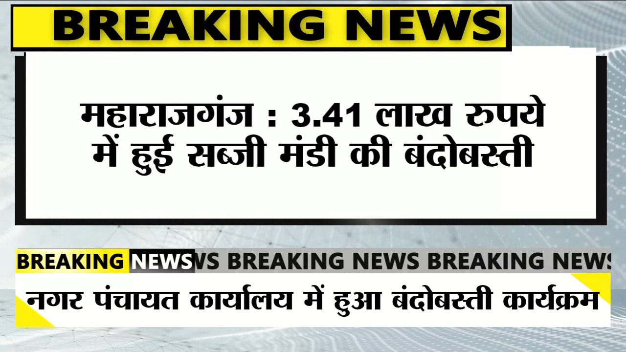 महाराजगंज नगर पंचायत कार्यालय कक्ष में मंगलवार को सब्जी मंडी की बंदोबस्ती की प्रक्रिया पूरी की गई। नगर कार्यपालक पदाधिकारी (ईओ) हरिश्चंद्र ने बताया कि बंदोबस्ती 3 लाख 41 हजार रुपये में तय की गई है। इसके अलावा 5% निबंधन शुल्क (₹17,050) और 5% स्टाफ शुल्क (₹17,050) भी जमा करना होगा।