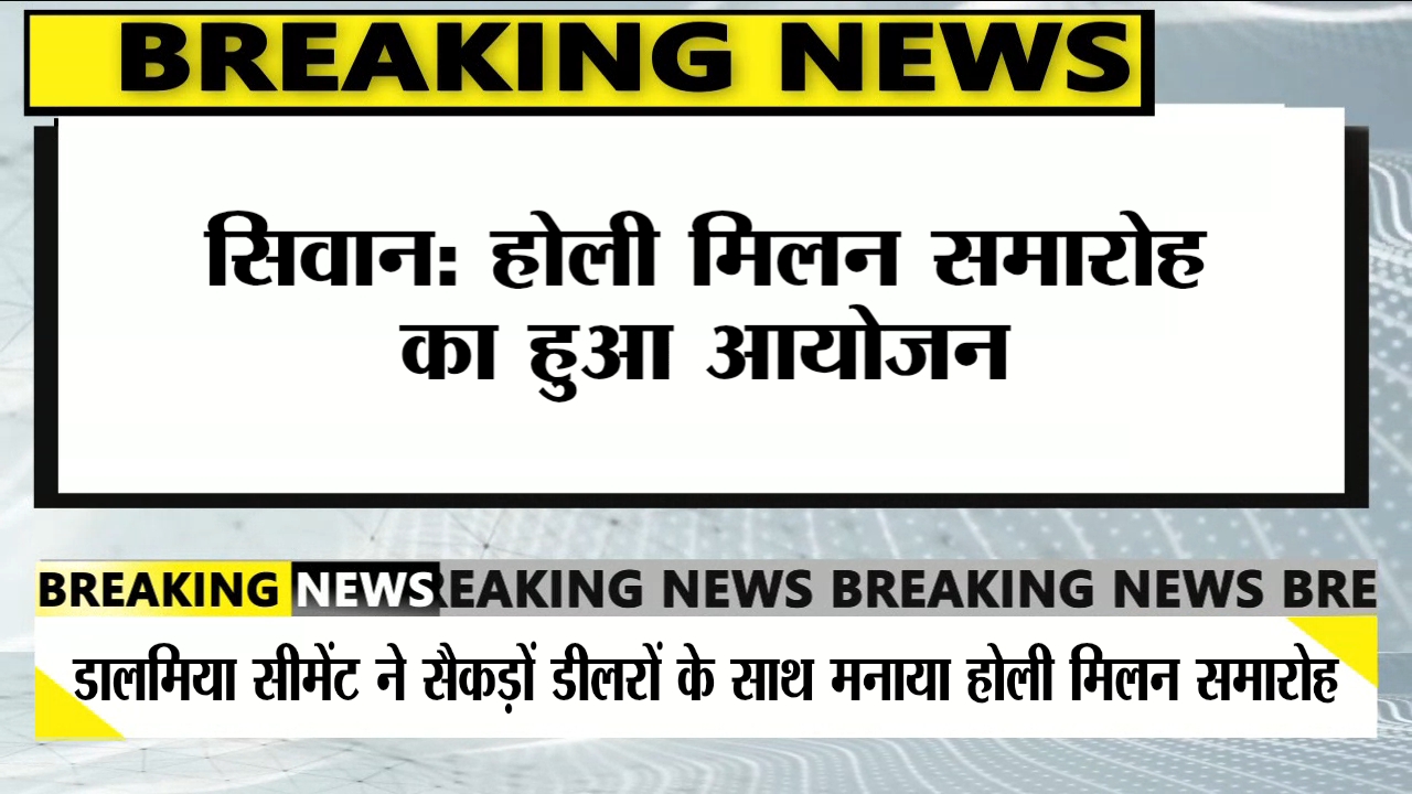 सिवान के एक होटल में डालमिया सीमेंट द्वारा होली मिलन समारोह का आयोजन किया गया, जिसमें सैकड़ों डीलरों ने भाग लिया। कार्यक्रम की शुरुआत बिहार हेड दिनेश मिश्रा, सेल्स प्रमोटर प्रकाश कुमार सिंह, नंदलाल गुप्ता, यूनिट हेड अभिनव कुमार, आशीष कुमार, अश्विन मिश्र, चंद्रभान कुमार ओझा और अनिल द्वारा दीप प्रज्वलन से हुई।