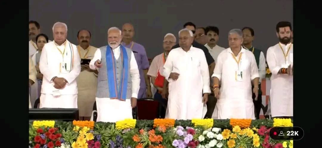 सिवान: प्रधानमंत्री नरेंद्र मोदी शुक्रवार को पचरुखी प्रखंड के जसौली खर्ग पहुंचे, जहां मुख्यमंत्री नीतीश कुमार, उपमुख्यमंत्री सम्राट चौधरी समेत एनडीए के अन्य नेताओं ने उनका गर्मजोशी से स्वागत किया। पीएम के स्वागत में बुके और अंगवस्त्र भेंट किए गए, जबकि जिला पुलिस बल ने उन्हें गार्ड ऑफ ऑनर दिया।