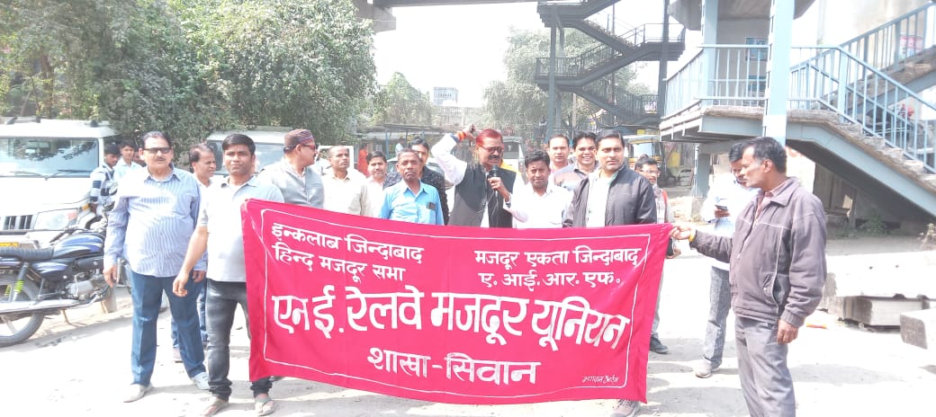 सीवान: आल इंडिया रेलवे मेंस फेडरेशन के राष्ट्रव्यापी अखिल भारतीय मांग दिवस अभियान के तहत एनई रेलवे मजदूर यूनियन जिला शाखा ने शुक्रवार को एक जोरदार प्रदर्शन किया। यूनियन के शाखा मंत्री कामरेड विनोद रंजन के नेतृत्व में रेल कर्मचारियों ने अपने कार्यालय से मार्च शुरू किया, जो कॉलोनी और जंक्शन से होते हुए पुनः कार्यालय पर समाप्त हुआ।