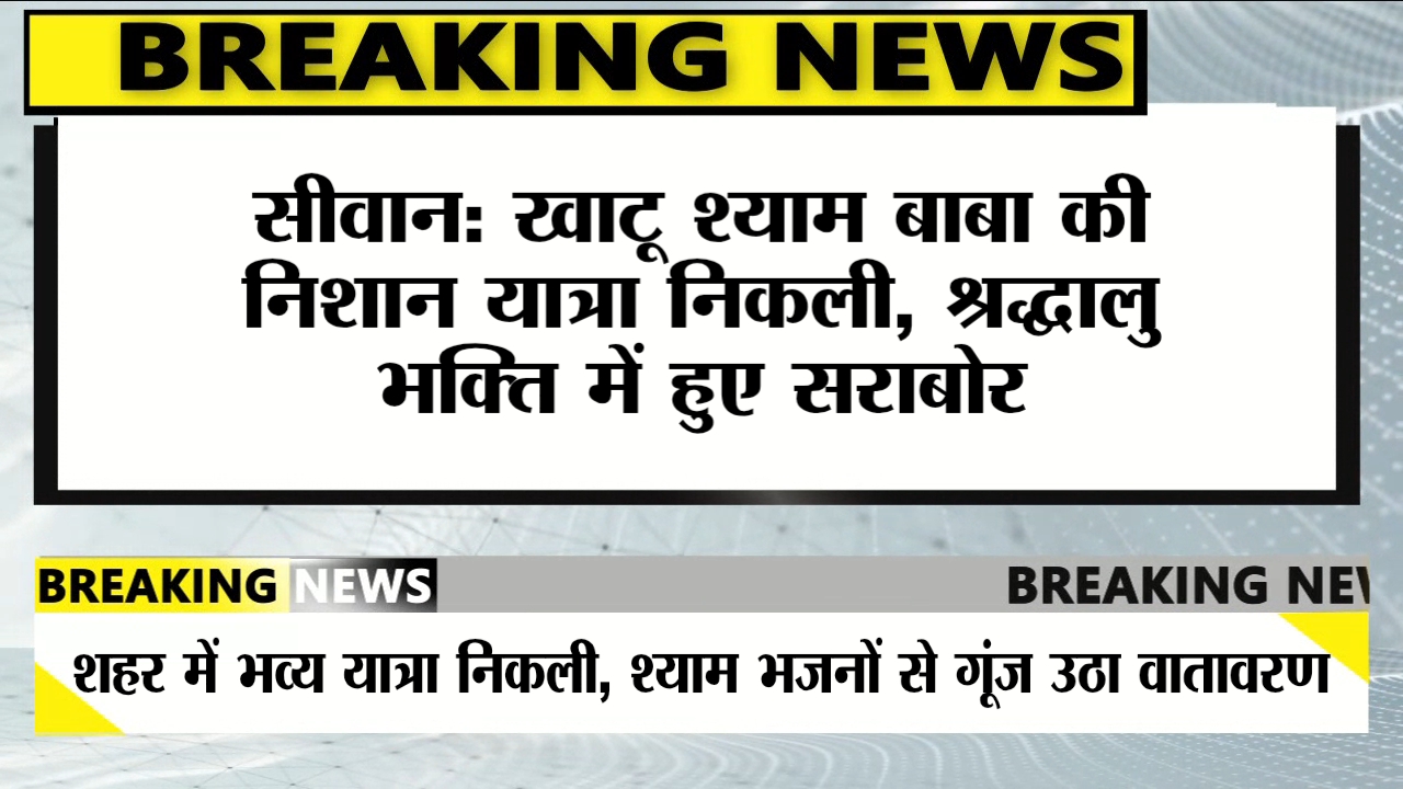 सीवान में सोमवार की सुबह खाटू श्याम बाबा की भव्य निशान यात्रा (ध्वज पद यात्रा) मारवाड़ी समाज द्वारा निकाली गई। इस दौरान बड़ी संख्या में श्रद्धालु उपस्थित रहे। आकर्षक रूप से सजे खाटू श्याम बाबा को रथ में विराजित कर जयप्रकाश नगर से यात्रा प्रारंभ की गई, जो शहर के मुख्य मार्गों का भ्रमण करते हुए कचहरी रोड स्थित राधे कृष्ण मंदिर पर संपन्न हुई।