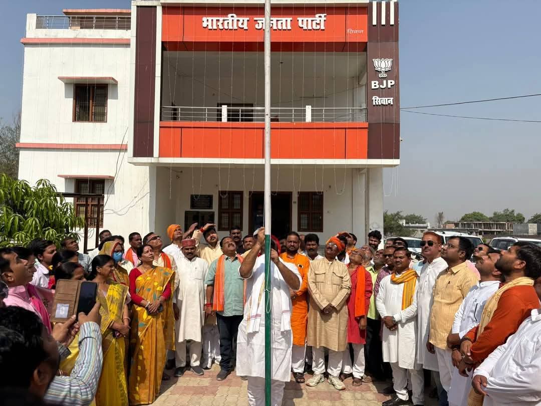 सिवान : शहर के चांप स्थित भारतीय जनता पार्टी जिला कार्यालय में रविवार को पार्टी का 46वां स्थापना दिवस पूरे धूमधाम और उत्साह के साथ मनाया गया। कार्यक्रम की शुरुआत पंडित दीनदयाल उपाध्याय और डॉ. श्यामा प्रसाद मुखर्जी के तैल चित्र पर पुष्प अर्पित कर की गई। इसके बाद भाजपा जिलाध्यक्ष राहुल तिवारी ने झंडोतोलन किया और कार्यकर्ताओं को संबोधित किया।