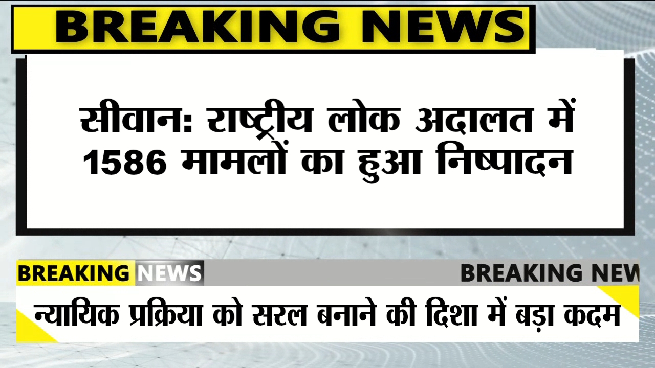 सीवान: शहर स्थित सिविल कोर्ट परिसर में शनिवार को आयोजित राष्ट्रीय लोक अदालत में कुल 1586 मामलों का निष्पादन किया गया। राज्य विधिक सेवा प्राधिकार के दिशा-निर्देशों के तहत आयोजित इस अदालत में विभिन्न विवादों को सुलझाने पर जोर दिया गया।
