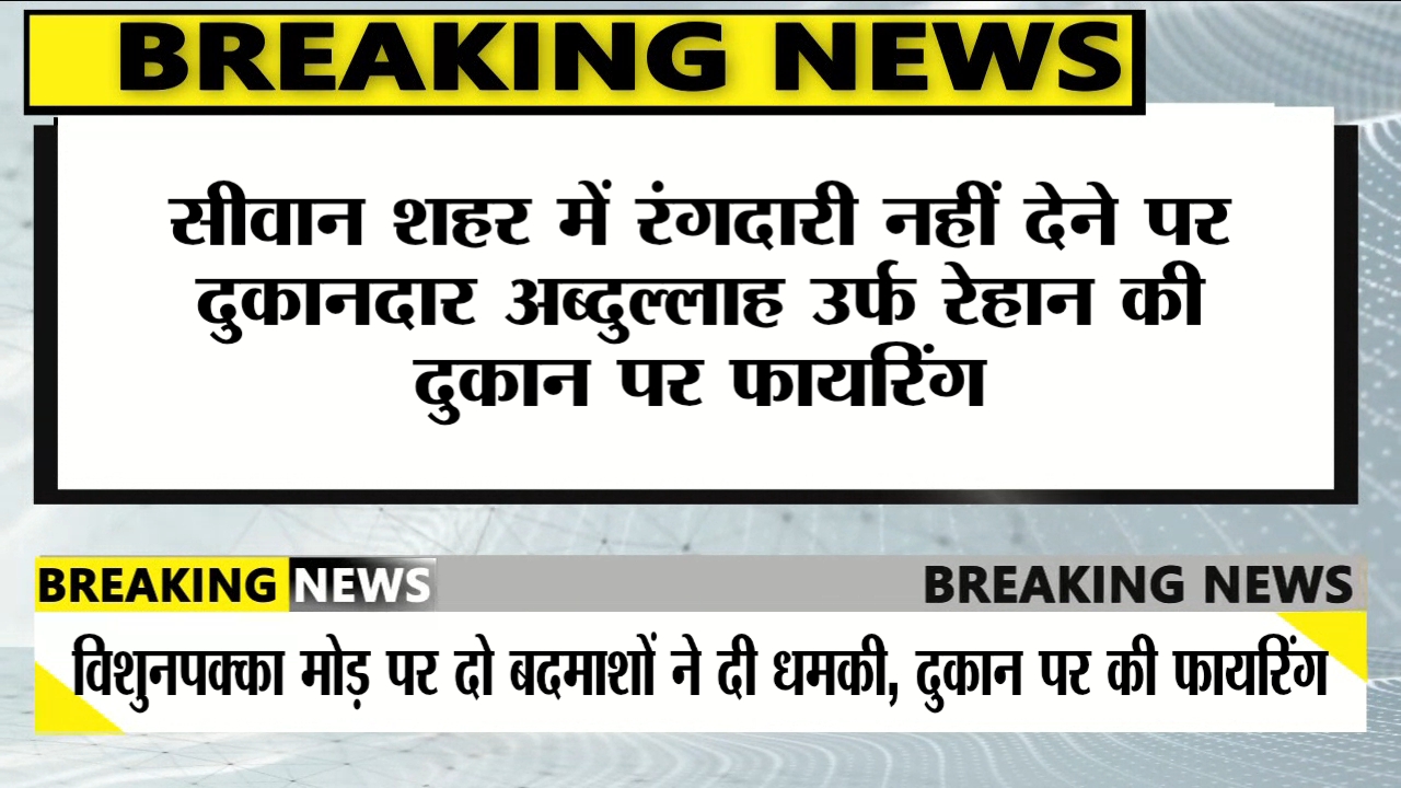 सीवान नगर थाना क्षेत्र के विशुनपक्का मोड़ स्थित एक दुकान पर रविवार की रात रंगदारी नहीं देने को लेकर दो बदमाशों ने फायरिंग कर दहशत फैला दी। हालांकि संयोगवश गोली फायर नहीं हुई और दुकानदार बाल-बाल बच गया। पीड़ित अब्दुल्लाह उर्फ रेहान ने नगर थाना में घटना की लिखित शिकायत दर्ज कराई है।