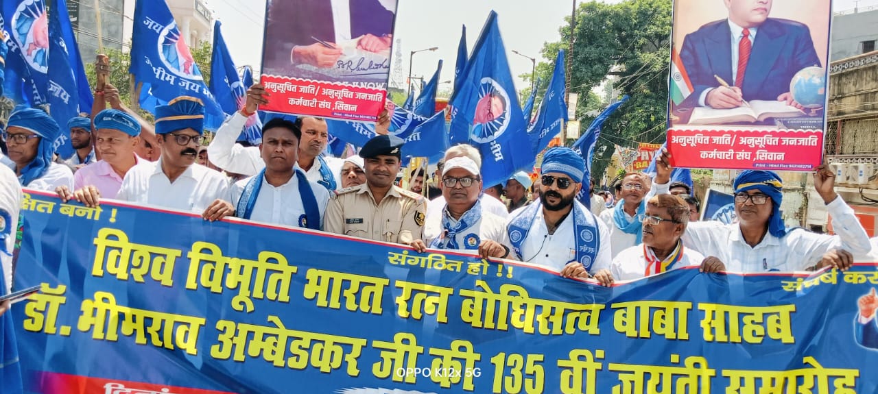 सिवान, 14 अप्रैल: विश्व विभूति, भारत रत्न एवं ज्ञान के प्रतीक बाबा साहेब डॉ. भीमराव अंबेडकर की 135वीं जयंती के अवसर पर सिवान में भव्य कार्यक्रम का आयोजन किया गया। यह आयोजन जयंती समारोह समिति सिवान एवं अनुसूचित जाति-जनजाति कर्मचारी संघ सिवान के तत्वावधान में संपन्न हुआ।