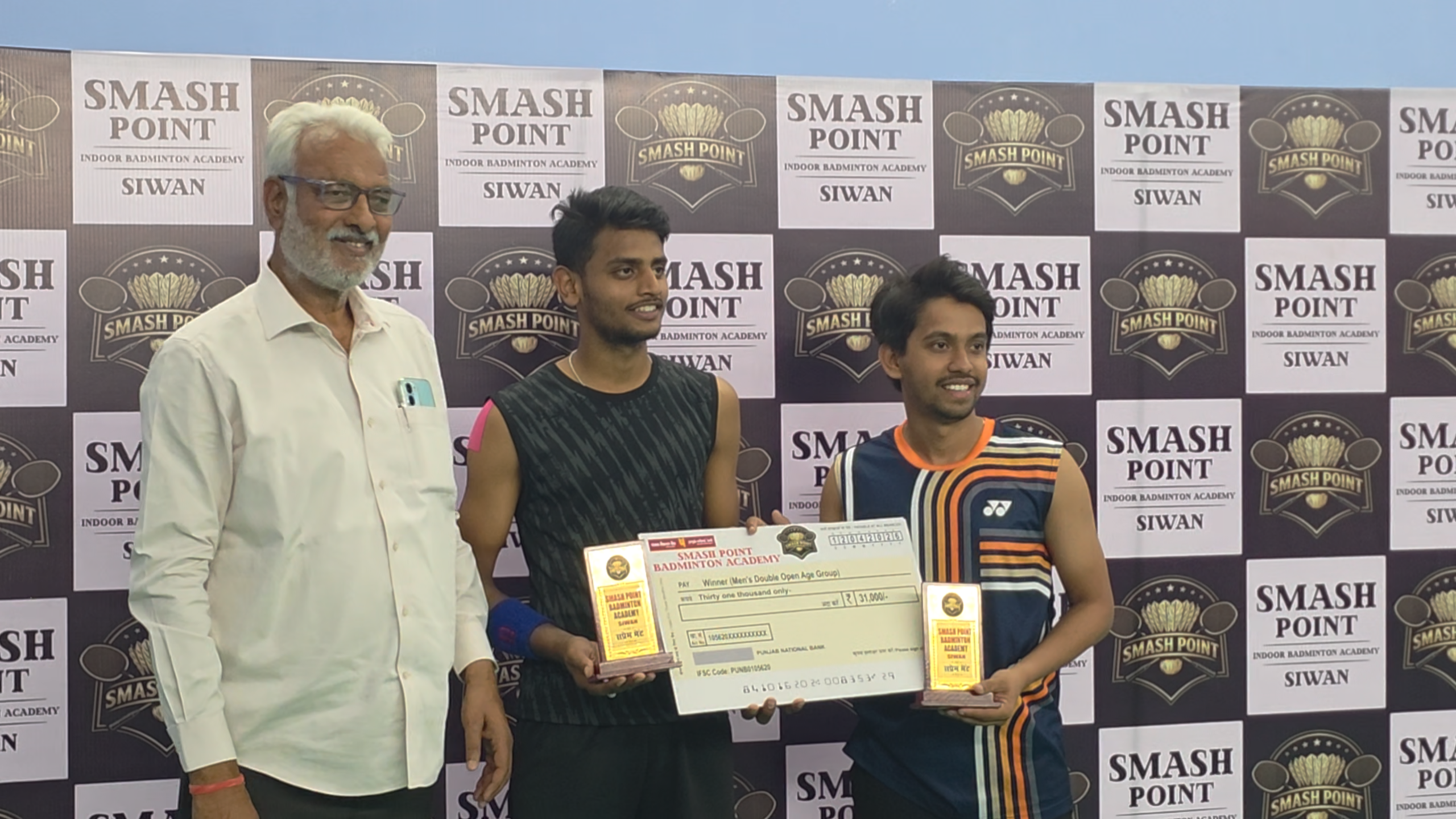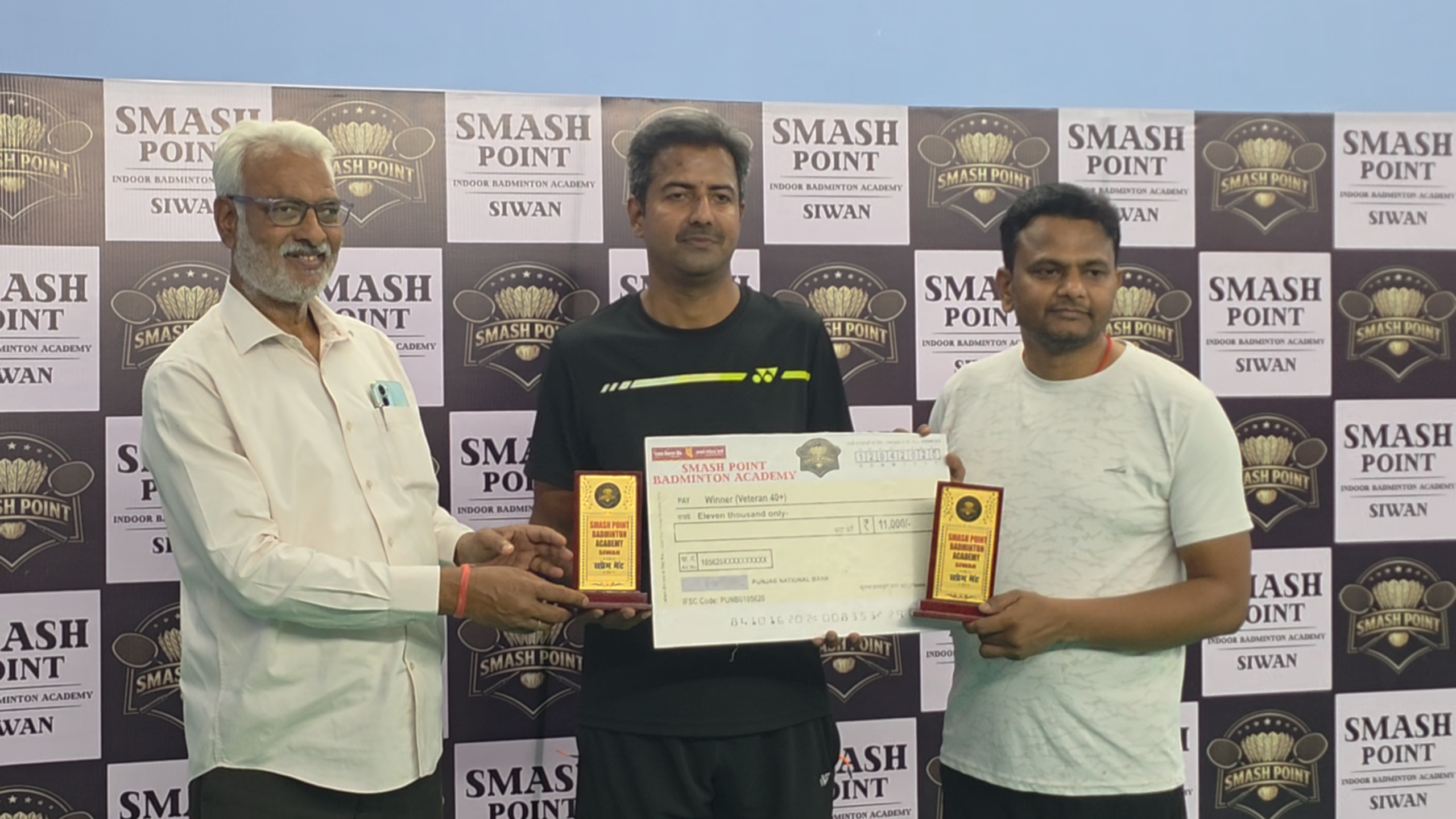 सिवान शहर के बबुनिया रोड, लल्लन परिसर स्थित स्मैश पॉइंट बैडमिंटन कोर्ट में आयोजित टूर्नामेंट का सफल समापन हुआ। इस प्रतियोगिता में खिलाड़ियों ने शानदार खेल का प्रदर्शन कर दर्शकों का भरपूर मनोरंजन किया। टूर्नामेंट में दो श्रेणियों—ओपन मेंस और वेटरन्स—में मुकाबले खेले गए, जिसमें सारण प्रमंडल के सिवान, गोपालगंज और छपरा की टीमों ने हिस्सा लिया।