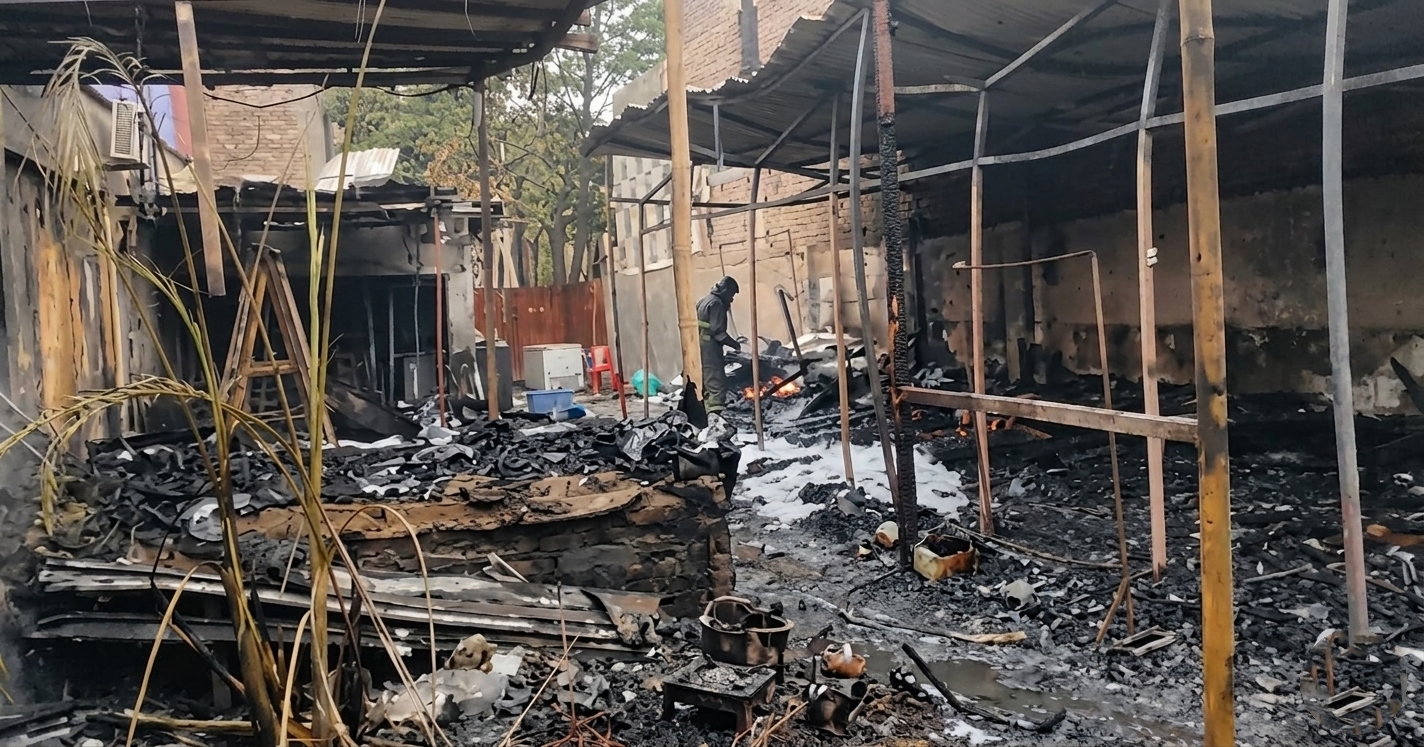 सिवान : नगर थाना क्षेत्र के राजेंद्र पथ स्थित पीदेवी मोड़ के समीप शुक्रवार की अल सुबह बंबू रेस्टोरेंट में भीषण आग लग गई। आग इतनी तेजी से फैली कि देखते ही देखते पूरा रेस्टोरेंट जलकर राख में तब्दील हो गया। घटना के बाद इलाके में अफरा-तफरी का माहौल कायम हो गया और बड़ी संख्या में लोग मौके पर जुट गए।