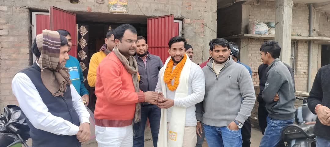 ✍🏽परवेज़ अख़्तर/एडिटर इन चीफ भाजयुमो जिलाध्यक्ष चंद्रविजय प्रकाश उर्फ हैप्पी यादव ने गुरुवार को दारौंदा प्रखंड के बालबंगरा निवासी बाडी बिल्डर सुमित शर्मा को अंगवस्त्र