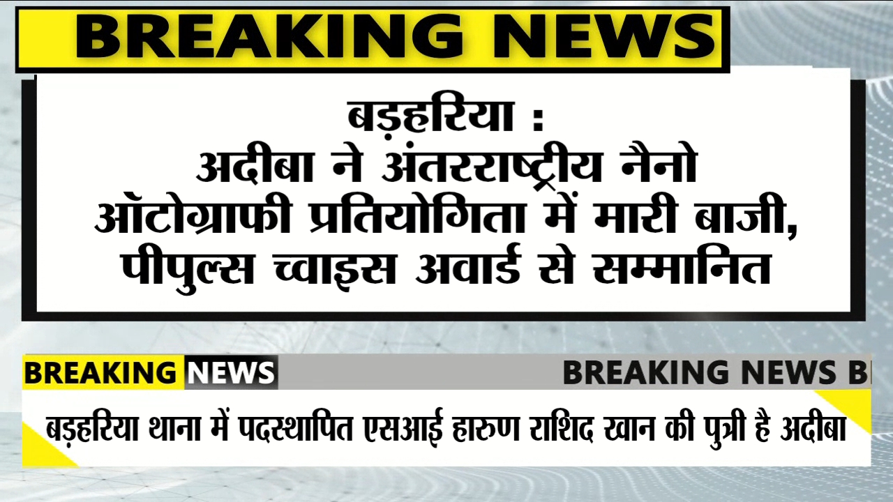 बड़हरिया : अदीबा ने अंतरराष्ट्रीय नैनो ऑटोग्राफी प्रतियोगिता में मारी बाजी, पीपुल्स च्वाइस अवार्ड से सम्मानित