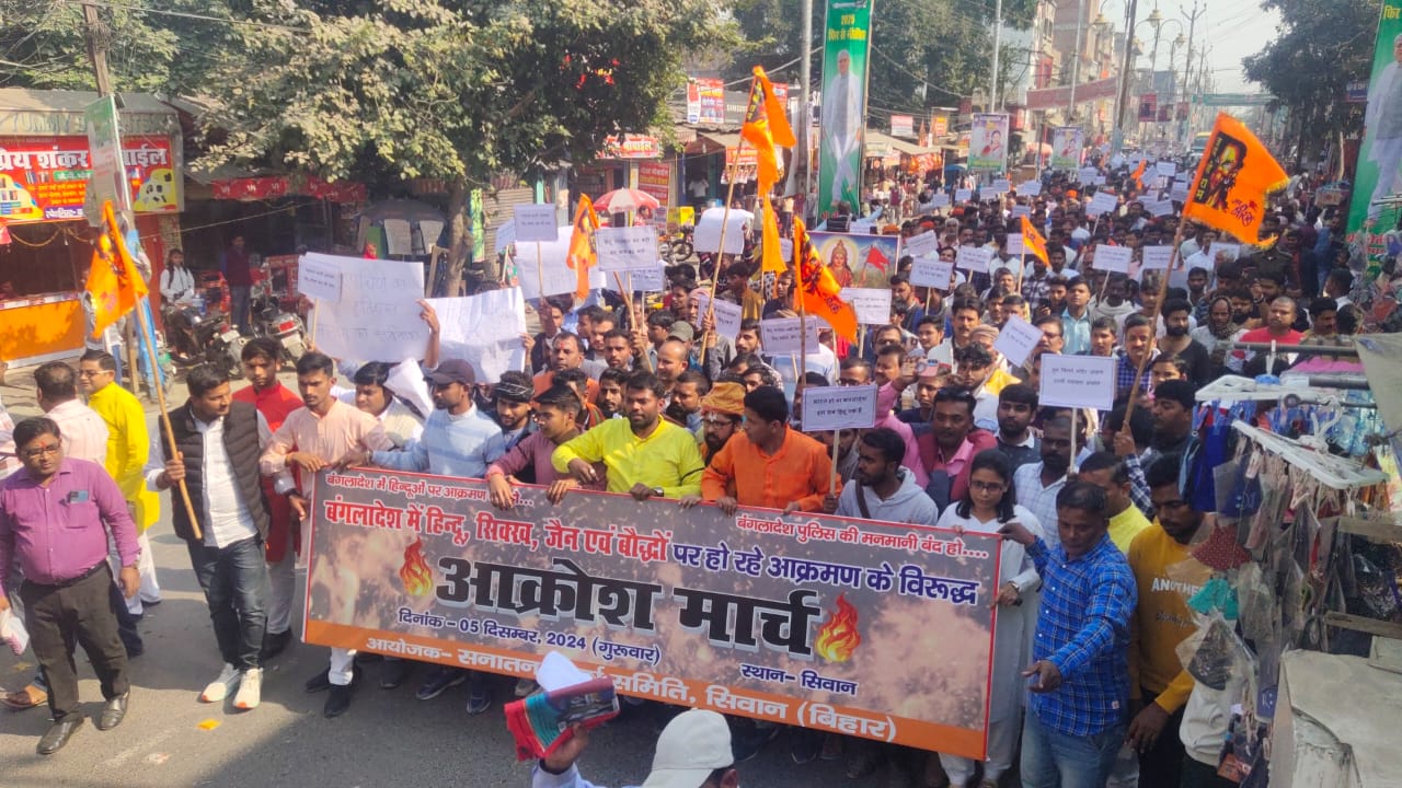 सीवान : बांग्लादेशी हिंदुओं पर अत्याचार के खिलाफ निकाला गया आक्रोश मार्च